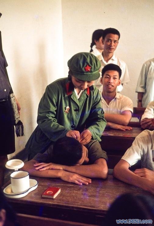 正在全神灌注上课的师生们。那墙上的黑板上方,老成地吊挂着毛主席的画像,其双方了了地写着“大海漂荡需靠舵手引颈,干翻新定要靠毛泽东想想伙同”。