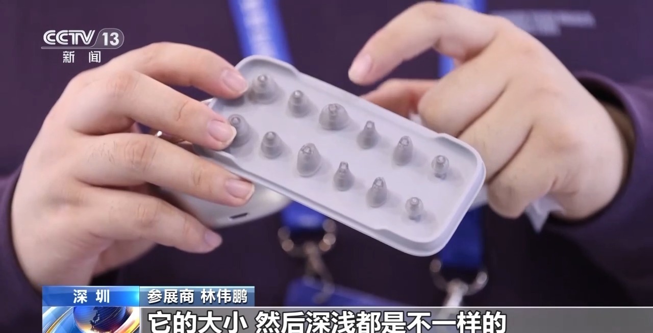 参展商 林伟鹏:每个东说念主的耳朵大小、浅深齐是不相通的,是以这款居品,配备了6个不同的耳塞。耳塞齐是硅胶材质,不会有闷耳胀耳堵耳的情况。