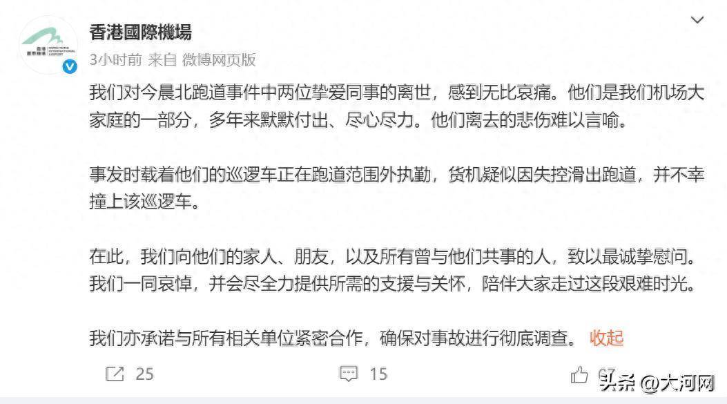 10月20日,香港海外机场微博发文回话货机坠海事故。全文如下: