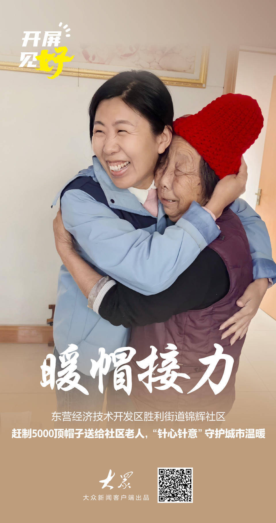 这份挂念,并非空悬于心。旧年,一场名为“情暖重阳”的举止,将志愿者们亲手编织的3019条领巾,送到了每一位80岁以上老东谈主的手中。领巾贴上脖颈的和缓仿佛还未散尽,本年,一场领域更大、范围更广的“暖帽勇猛”坚强启程,要将这份“针心针意”的督察,从“颈间”延长到“头顶”。